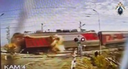 Камера наблюдения на регулируемом переезде недалеко от станции Свияжск в Татарстане сняла момент вылета КамАЗа на пути и столкновение грузовика с поездом.Российская газета