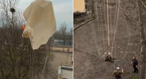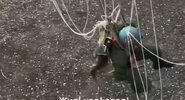 На кадрах, которыми супруги поделились в соцсетях, видно, что молодой человек явно просчитался с траекторией приземления – его парашют застрял в кроне деревьев, из-за чего парень буквально завис в воздухе.