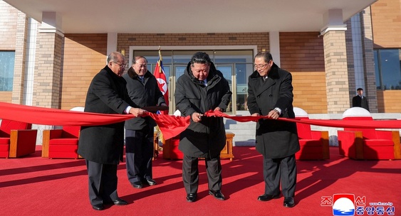 На опубликованных изображениях видно, как северокорейский руководитель перерезает красную ленту и оценивает результаты возведения комплекса.Царьград