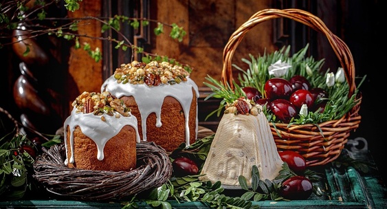 «Он сияет, словно перья сказочной птицы, а внутри — отборные сухофрукты и благородный шоколад», — так описывают свой кулич в ресторане «Гвидон».