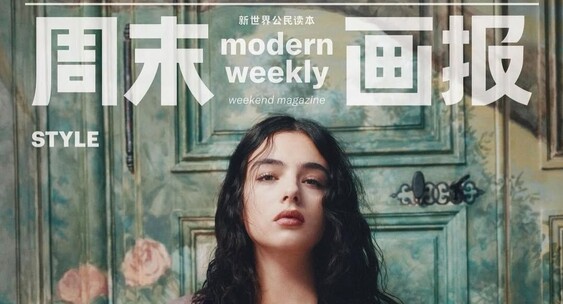 На обложке модель позировала в коричнево-черном джемпере с глубоким декольте, который сочетала с белой полупрозрачной юбкой в горошек.Газета.Ru