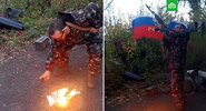 В ролике Миннис, находясь на передовой, сжигает паспорт.РИА Новости