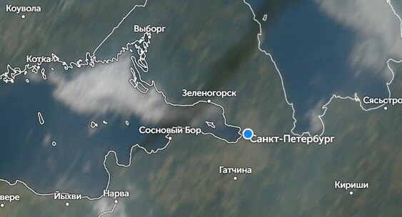 Zoom Earth показал, как дым из области перемещался в сторону Петербурга в минувшее воскресенье.Росбалт