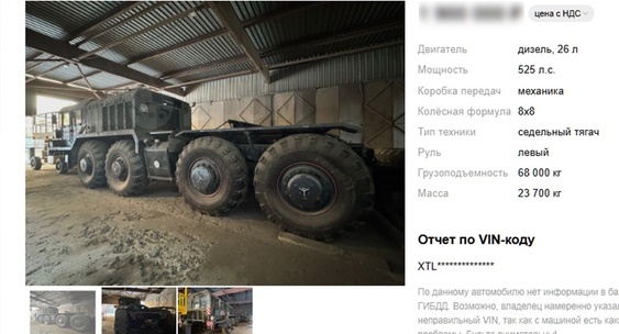 В Череповце на одном из онлайн-агрегаторов выставлен на продажу редкий образец армейской спецтехники — сверхтяжёлый седельный тягач КЗКТ-7428 стоимостью 1,9 млн рублей.Newsroom24 Вологда