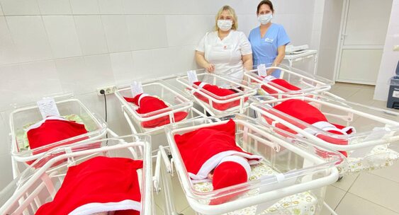 В последние предпраздничные и первые дни Нового года появившихся на свет детишек здесь будут наряжать в красно-белые "символы" самого сказочного торжества.Саратов 24