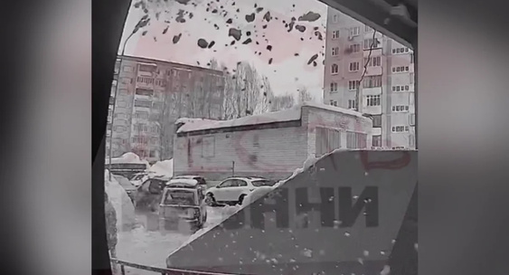 Чудо-мама оттащила ребёнка за секунду до падения лавины с крыши дома в Казани