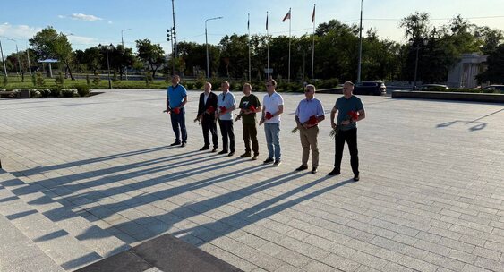 Кирилл Поляков и Олег Моргун возложили цветы к монументу «Мариуполь — город воинской славы»