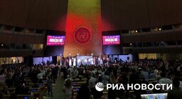 Музыканты российской группы «Хор Турецкого» и арт-группа Soprano выступили в зале Генеральной ассамблеи ООН в Нью-Йорке, США. — Lenta.ru.