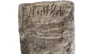 Под текстом вырезан символ, интерпретируемый либо как племенная тамга, либо как стилизованное изображение реки, что также типично для кочевой тюркской культуры VIII–XI веков.Наука