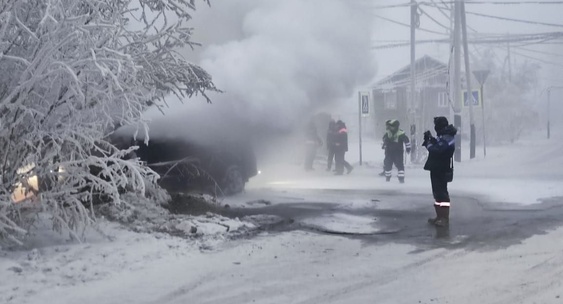 В Якутске автомобиль въехал в трубопровод и повредил тепловые сети, в результате чего 23 дома остались без теплоснабжения в -40 °С.RT на русском