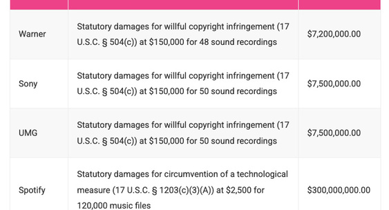 Spotify же просит 300 миллионов за обход технической защиты на 120 тысячах файлов.Ferra