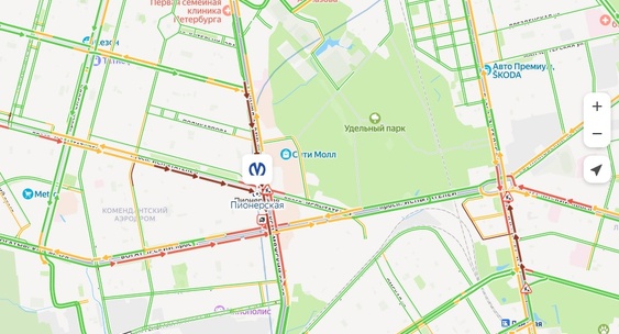 Днем 7 декабря все дороги вблизи торгового комплекса и расположенной рядом с ним станции метро «Пионерская» парализовало заторами.КП - Санкт-Петербург