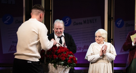 На поклоне после спектакля капитан «Авангарда» Дамир Шарипзянов вручил актёрам Драмтеатра корзину с цветами.Om1 Омск