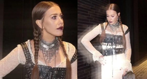 «Готическая Снегурочка»: Ксения Собчак снялась в кожаном бра поверх платья