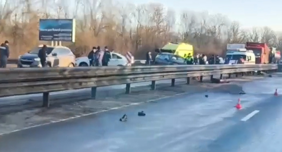 Утром на трассе М-4 возле Северного обхода Ростова (1042-й километр) случилось массовое ДТП.MSK1.RU
