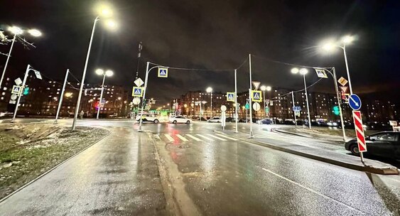 В Шушарах на пересечении улицы Туровской и Колпинского шоссе установили уличное освещение
