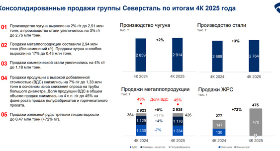 «Северсталь» продемонстрировала неоднозначные результаты за 2025 г. Снизив на фоне слабой ценовой динамики свои финансовые показатели, компания сумела нарастить выпуск и реализацию продукции и усилить позиции на рынке.Finam.Ru