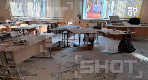 На кадрах видно повреждённую мебель: несколько парт обгорели, в кабинете заметны следы сильного огня и задымления.Life.ru