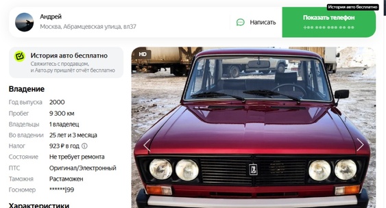 По словам журналистов из «Российской газеты», пробег машины составляет всего 9 300 км. Около 25 лет автомобиль находился в руках одного владельца в идеальном техническом и внешнем состоянии.Главный региональный