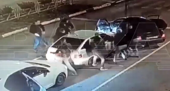 На кадрах видно, как несколько человек вытаскивают водителя из автомобиля, избивают и уезжают.Газета.Ru