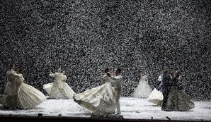 Ключевой метафорой спектакля, по замыслу художника Ольги Шаишмелашвили, стала детская игрушка — бумажный снег, символизирующий рок.Газета Культура