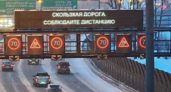 Информацию о новых ограничениях можно увидеть на табло и знаках переменной информации системы управления дорожным движением.КП - Санкт-Петербург