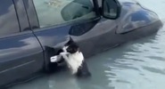 Дубайские полицейские спасли черно-белого кота, который из последних сил держался за ручку двери автомобиля.Smotrim.ru