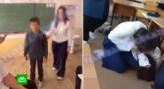 На появившихся в Сети кадрах видно, как школьница плюёт в лицо мальчику, затем бьёт по лицу.Life.ru