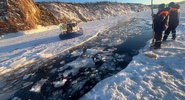 Микроавтобус УАЗ с туристами из Китая выехал на лёд Байкала и провалился в воду в районе мыса Хобой.Life.ru