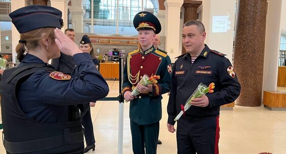 Врио начальника регионального Управления и заместители командующего округом обошли все посты охраны и поздравили девушек, несущих службу в праздничный день.78.ru
