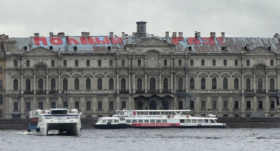 После внимания СМИ надпись «Полный газ» на крыше Ново-Михайловского дворца частично закрасили.Мойка78