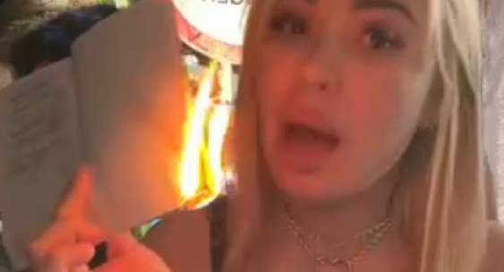 Петербургская блогерша Александра демонстративно сожгла свой российский паспорт.РЕН ТВ