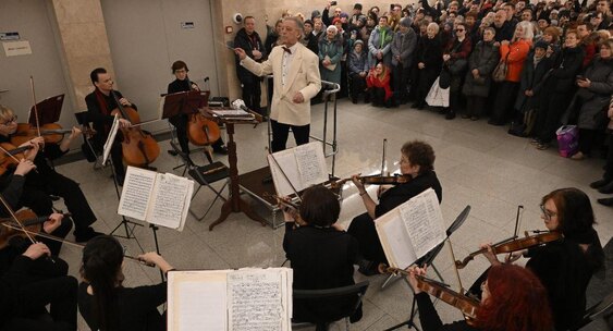 Санкт-Петербургский государственный симфонический оркестр «Классика» под управлением заслуженного артиста России Александра Канторова исполнил шедевры классической музыки на станции метро «Горный институт».КП - Санкт-Петербург