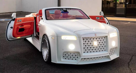 Даже культовая хромированная решетка радиатора была заменена на белую пластиковую с узором из множества треугольников, а статуэтка «Дух экстаза» выполнена в том же цвете.Южный автомобиль