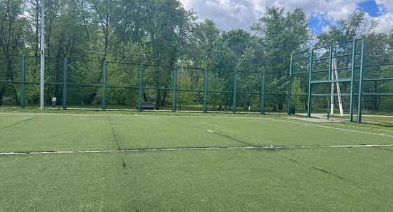 Проверка выявила, что покрытие находится в аварийном состоянии: на газоне обнаружены выбоины, неровности и множественные разрывы искусственной травы. Выявленные недостатки не только препятствуют полноценным занятиям, но и представляют опасность травмирования как для детей, так и для взрослых спортсменов.
