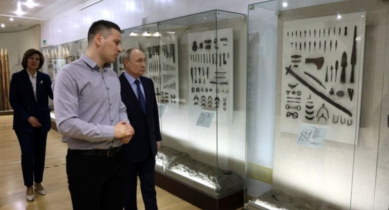 В комплексе "Музейные ряды" президент осмотрел коллекцию берестяных грамот, образцы древних вооружений, а также предметы ремесла и быта XI–XVII веков.Life.ru