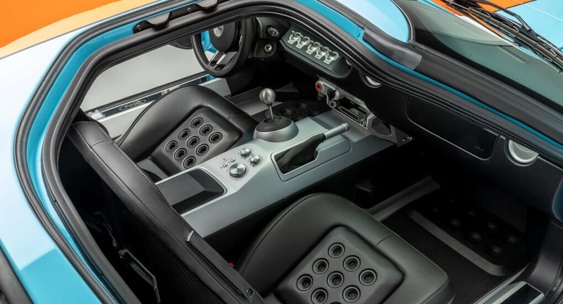 Кузов автомобиля окрашен в культовый голубо-оранжевый цвет Gulf с белыми гоночными кругами с цифрой "9". Под капотом установлен компрессорный V8 объемом 5,4 литра.MotorPage.Ru