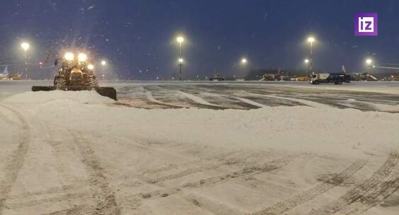 Для расчистки улиц и воздушной гавани задействованы десятки единиц спецтехники.РЕН ТВ