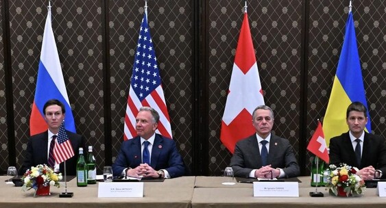 В центре установили флаги США и Швейцарии: посредник и принимающая сторона.Телеканал 360°