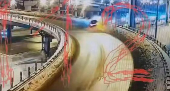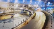 РЕН ТВ публикует момент падения автомобиля с эстакады на МКАД