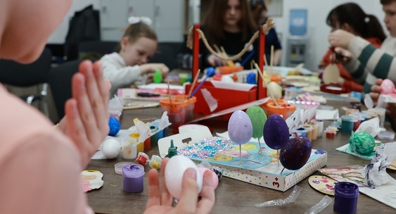 В Ростове-на-Дону дети из семей украинских переселенцев и беженцев собрались вместе, чтобы украсить свои дома к Пасхе. Для ребят закупили краски, кисти, деревянные игрушки, а также пластиковые фигурки в форме яиц, которые они раскрасили.