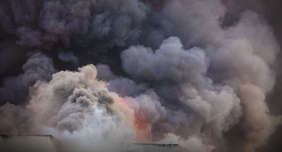 Сообщается, что видно открытое пламя, а в небо поднимается густой чёрный дым.Life.ru