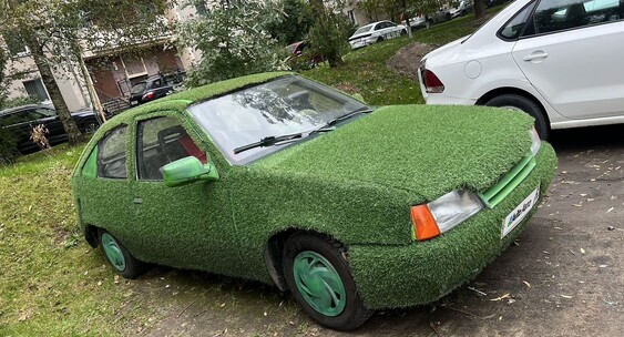 Автомобиль, благодаря ковролину, имитирующему зеленую траву, создает впечатление передвижной лужайки на четырех колесах.CarExpo.ru