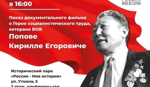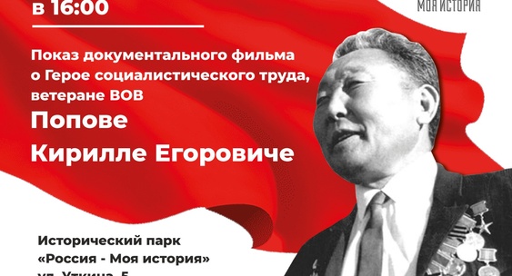 17 октября в историческом парке «Россия — Моя история» состоится показ документального фильма, посвященного жизни и подвигу Кирилла Егоровича Попова — ветерана Великой Отечественной войны и Героя Социалистического Труда, уроженца Ленского района.Ulus.media