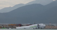 Сам самолет практически полностью оказался в море, при этом четверо членов экипажа не пострадали.РИА Новости