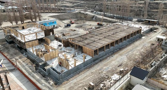 На блоке №4 возводят опалубку перекрытия, а на других участках идёт армирование колонн и монтаж опалубки.Зори Табасарана
