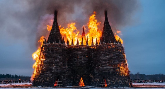 Арт-парк Никола-Ленивец, расположенный в Калужской области, известен своими масштабными перфомансами на Масленицу.РИА Новости
