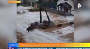 Жители сняли на видео, как стадо вепрей промчалось по улицам поселка.URA.Ru