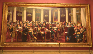 По словам губернатора, картины «Бурлаки на Волге», «Запорожцы», «Торжественное заседание Государственного совета», портреты Мусоргского, Тургенева, Третьякова каждый знает с детства.Вечерний Санкт-Петербург