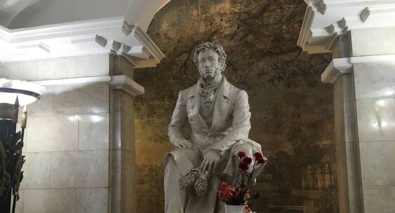 В Петербурге жители города принесли цветы к памятнику Пушкина в метро в день годовщины смерти поэта.Московский Комсомолец Питер
